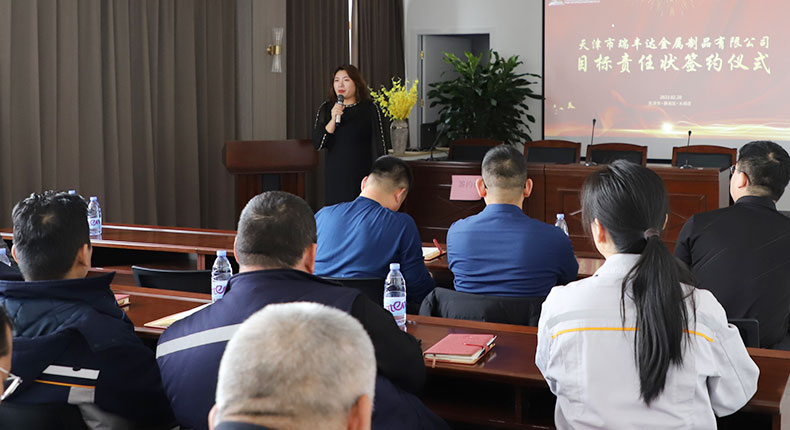 為確保公司發(fā)展戰(zhàn)略有效落實,全面實現公司2022年度各部門工作目標,強化企業(yè)執(zhí)行力,提升核心競爭力。2月20日,天津市瑞豐達金屬制品有限公司目標責任狀簽約儀式隆重舉行。總經理張加軍、CEO王娟、各部門負責人、中高層管理人員等出席此次會議。